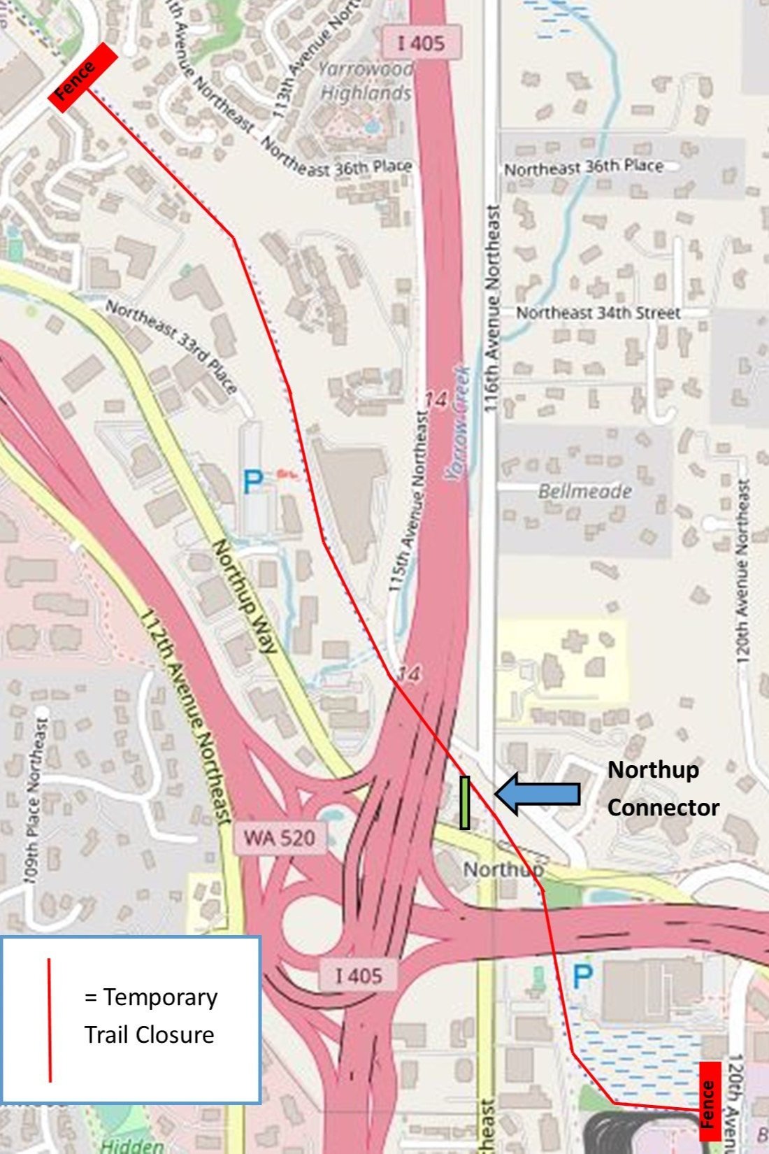 During these periods, the trail will be completely closed from the crossing at 108th Ave NE near the South Kirkland Park and Ride, to 120th Street just North of the Spring District in Bellevue.